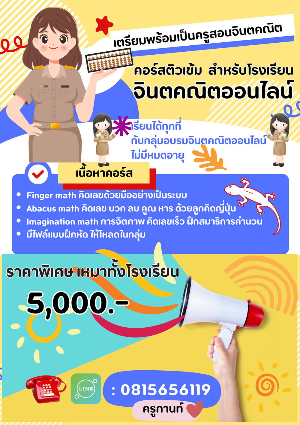 - รับสอนจินตคณิตออนไลน์ และสอนพิเศษคณิตศาสตร์ออนไลน์ตัวต่อตัว